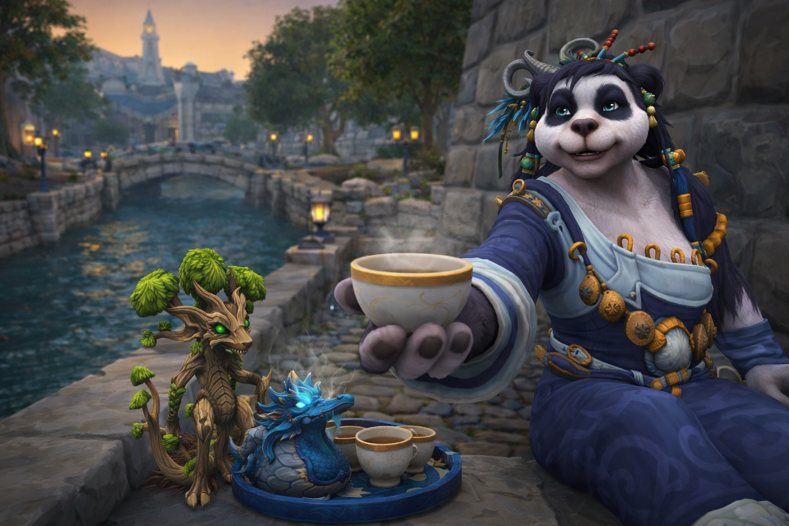 The harbour wind carried the faint scent of tea leaves between them as Stormwind continued its endless motion around the canal.